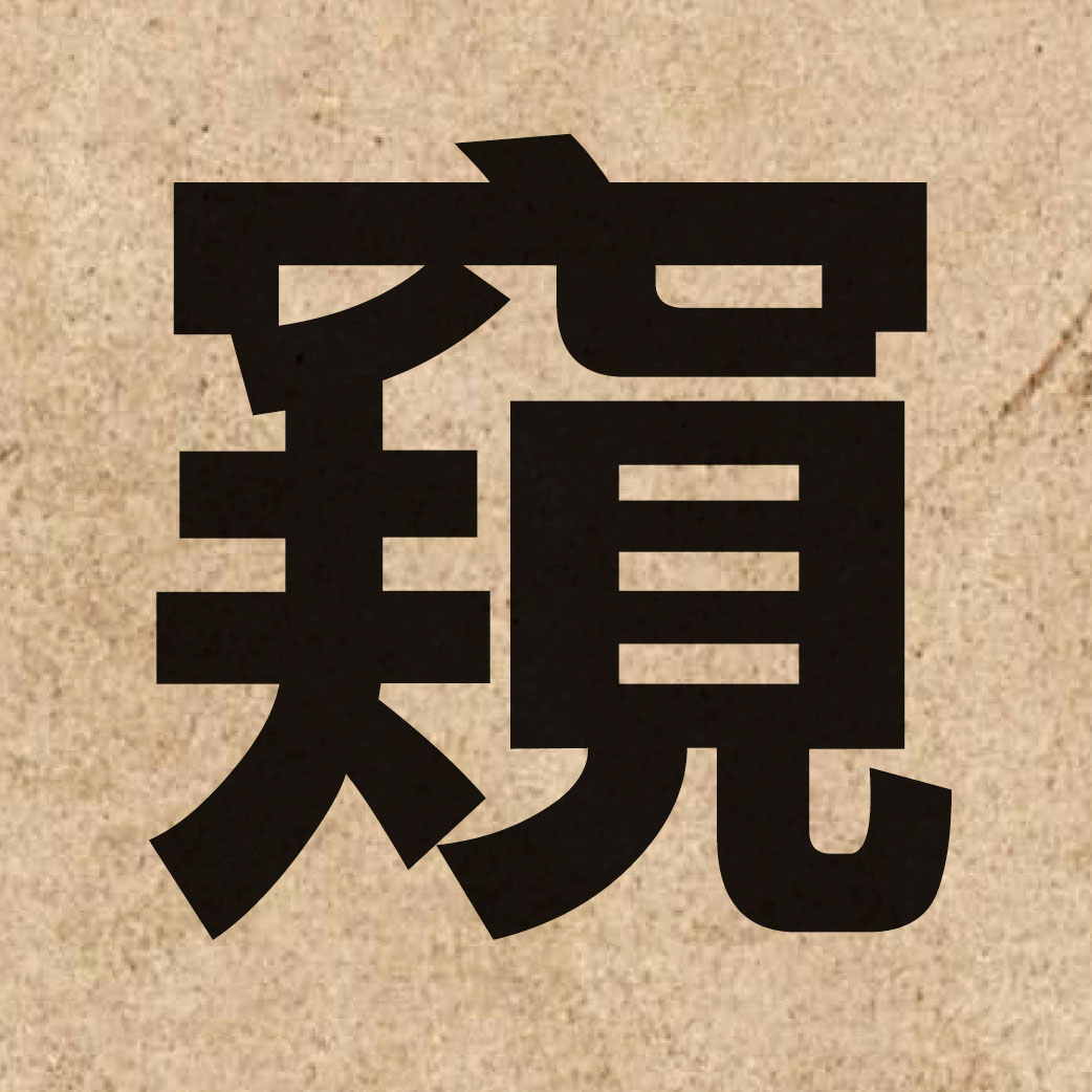 The Chinese character【窺】(peek) that I will teach you this time is a word that describes an action or purpose. It is mainly used for the following meanings: